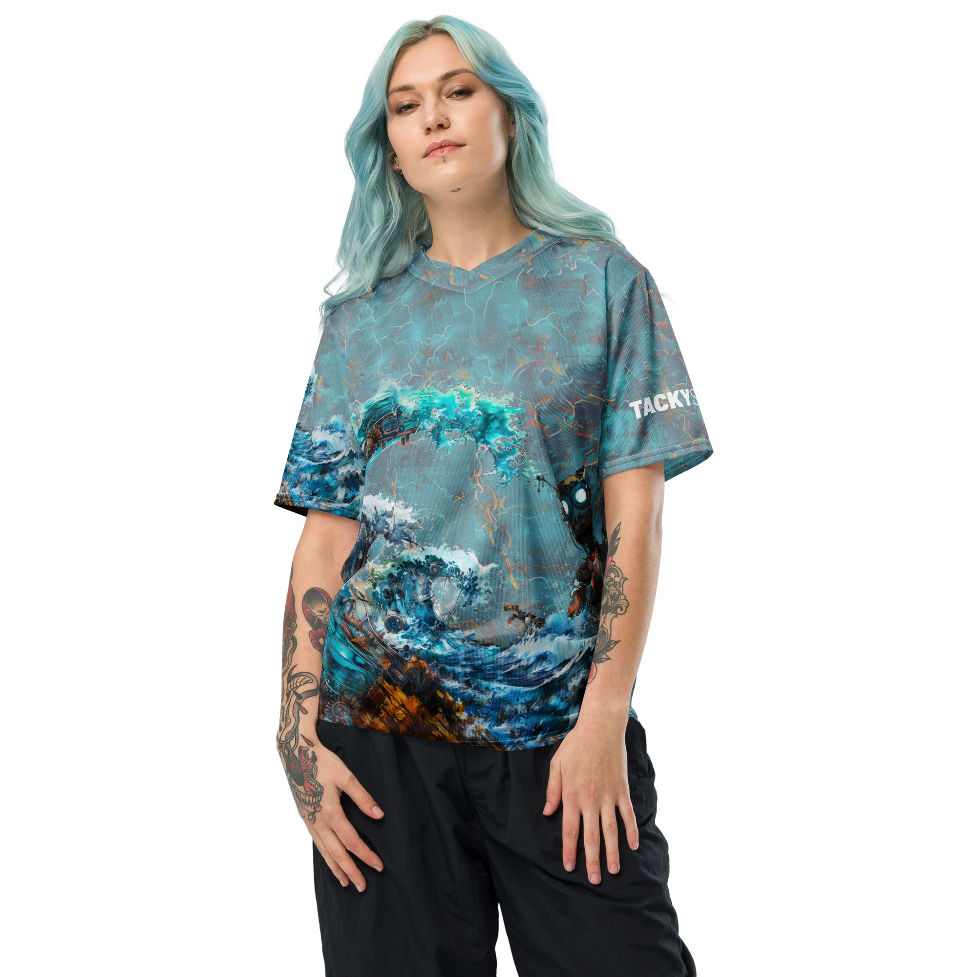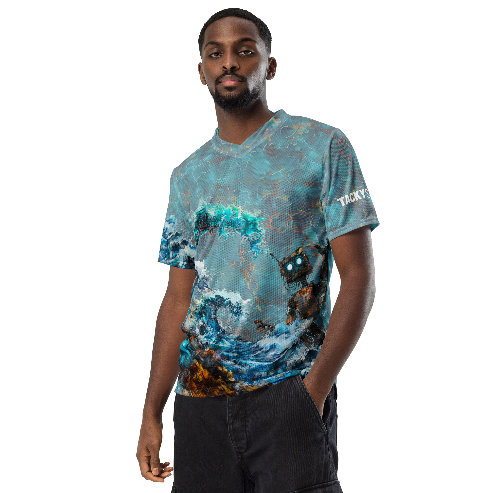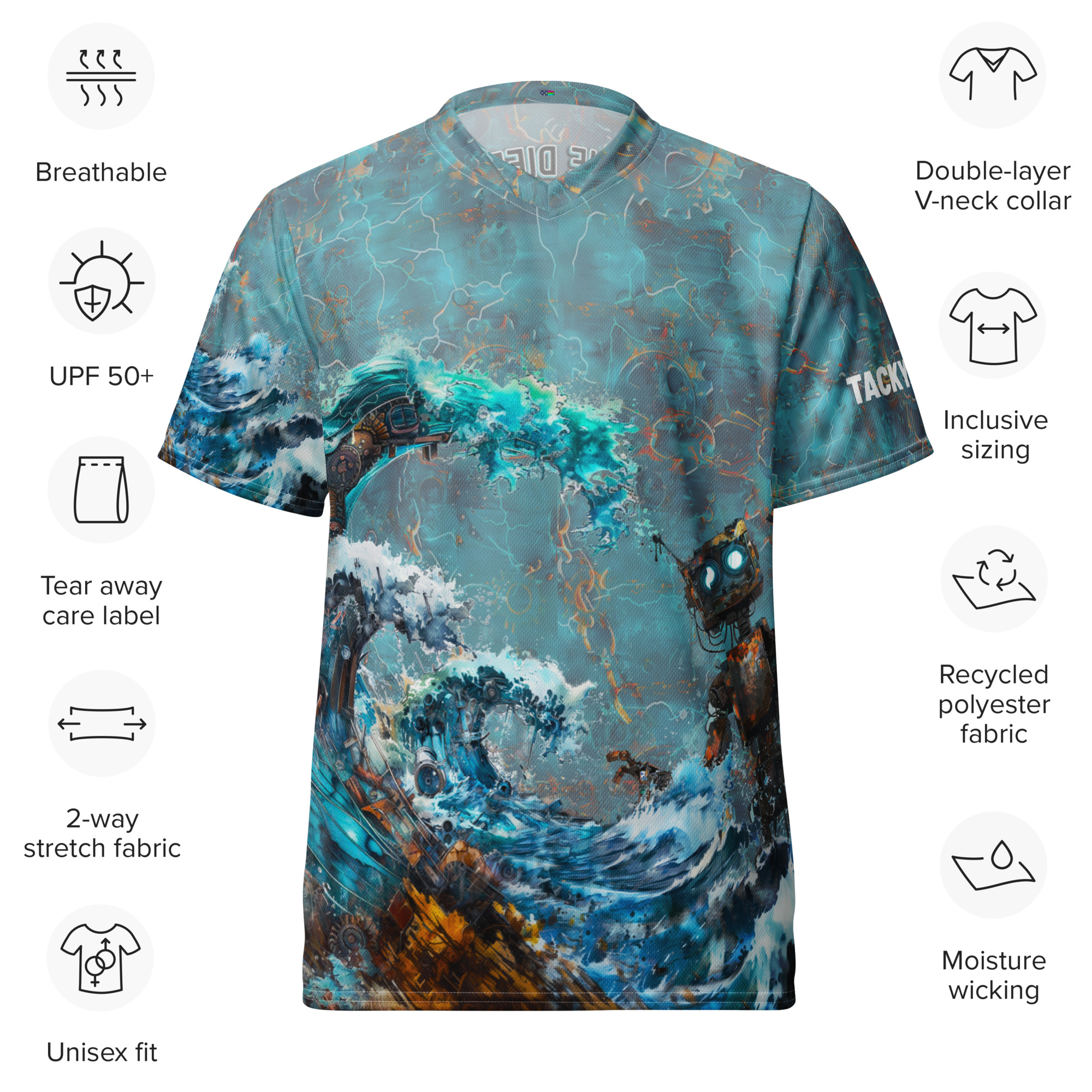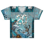Looking for the perfect sports jersey? We have you covered—made of 100% recycled polyester fabric, this shirt is breathable, moisture-wicking, and has a double-layered v-neck collar that creates a premium look.